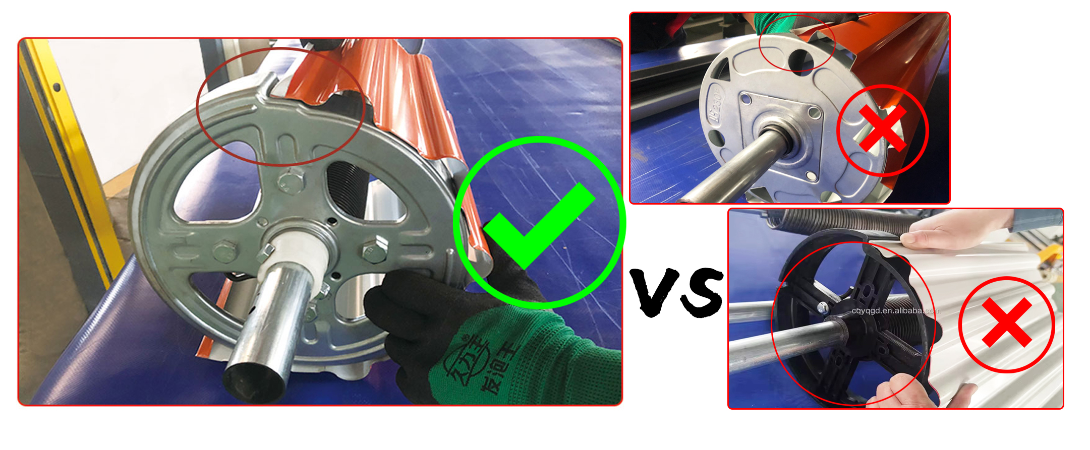 டிரம் மீது திரைச்சீலை சரிசெய்தல். டிரம்மில் திரை பொருத்தப்பட்ட பிறகு, அது ஒரு சரியான சுற்று செய்ய முடியும், கதவு திரைச்சீலை மேலும் கீழும் சீராக உருளும்